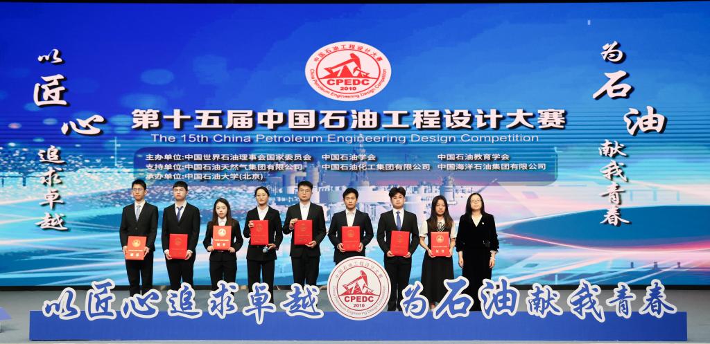 (通讯员 陈金建)4月27日下午,第十五届中国石油工程设计大赛在中国石油大学(北京)举办,党委常委、副校长许锋,本科生院、vwin德赢相关负责人应邀参加颁奖大会。我院参赛团队斩获一等奖2项、二等奖12项、三等奖28项,综合组首次获得一等奖,获奖数量创历年之最。熊青山、许文俊等教师获评“优秀指导教师”,赛事组织者陈金建获评“先进个人”,长江大学获“优秀组织奖”。