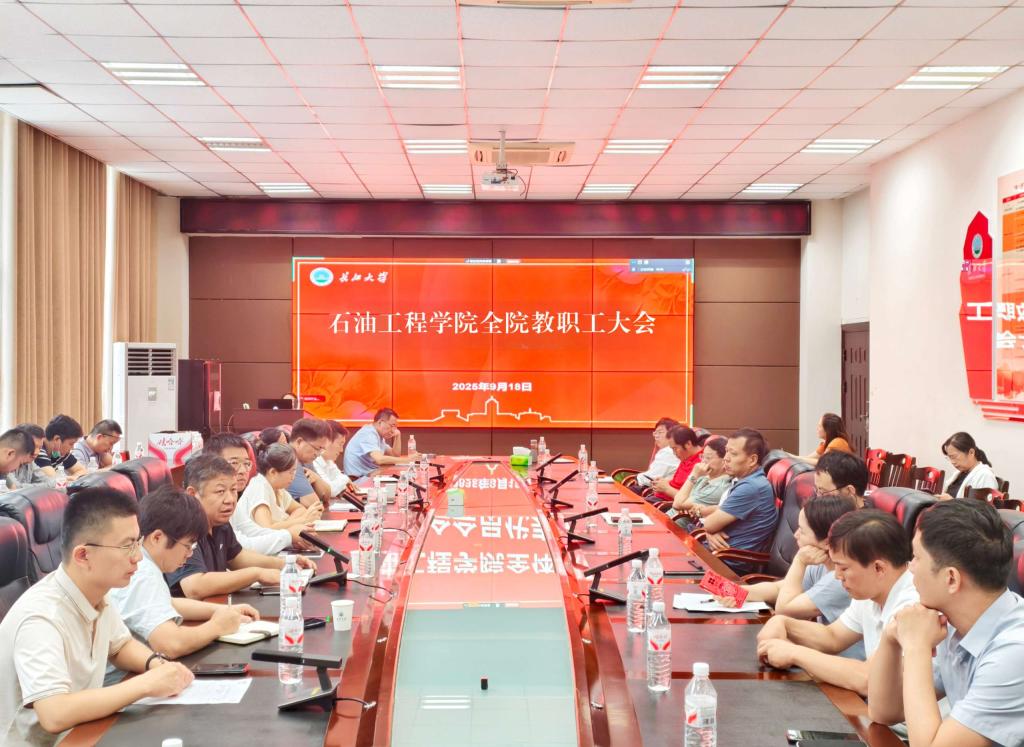 2025年9月18日下午,vwin德赢在石油科技大楼B113会议室召开全院大会,部署新学期重点工作,共绘学院2025-2028年改革发展新蓝图。学院党委书记张伟主持会议,全体教职工参会。