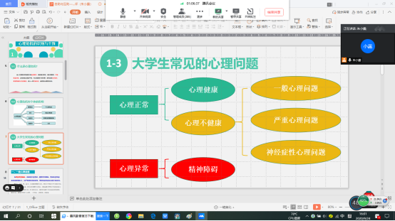 为做好秋季开学后学生心理健康教育工作,落实常态化疫情防控形势下的心理适应,提升学生骨干自助与互助水平,9月24日下午3时,vwin德赢通过腾讯会议开展了2020年秋季学生骨干心理健康教育线上培训工作。此次培训由学院心理专干朱小露老师主讲,本科生、研究生班级班长、团支书、心理委员、安全委员、寝室长参与此次培训。