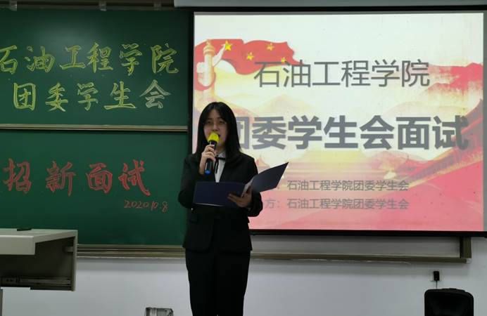 2020年10月7日、8日晚六点半,学生会各部门在武B-104开始招新第一次面试。团委学生会部长主席团出席此次活动并担任此次面试评委。本次活动由学生会副主席赵书逸主持。