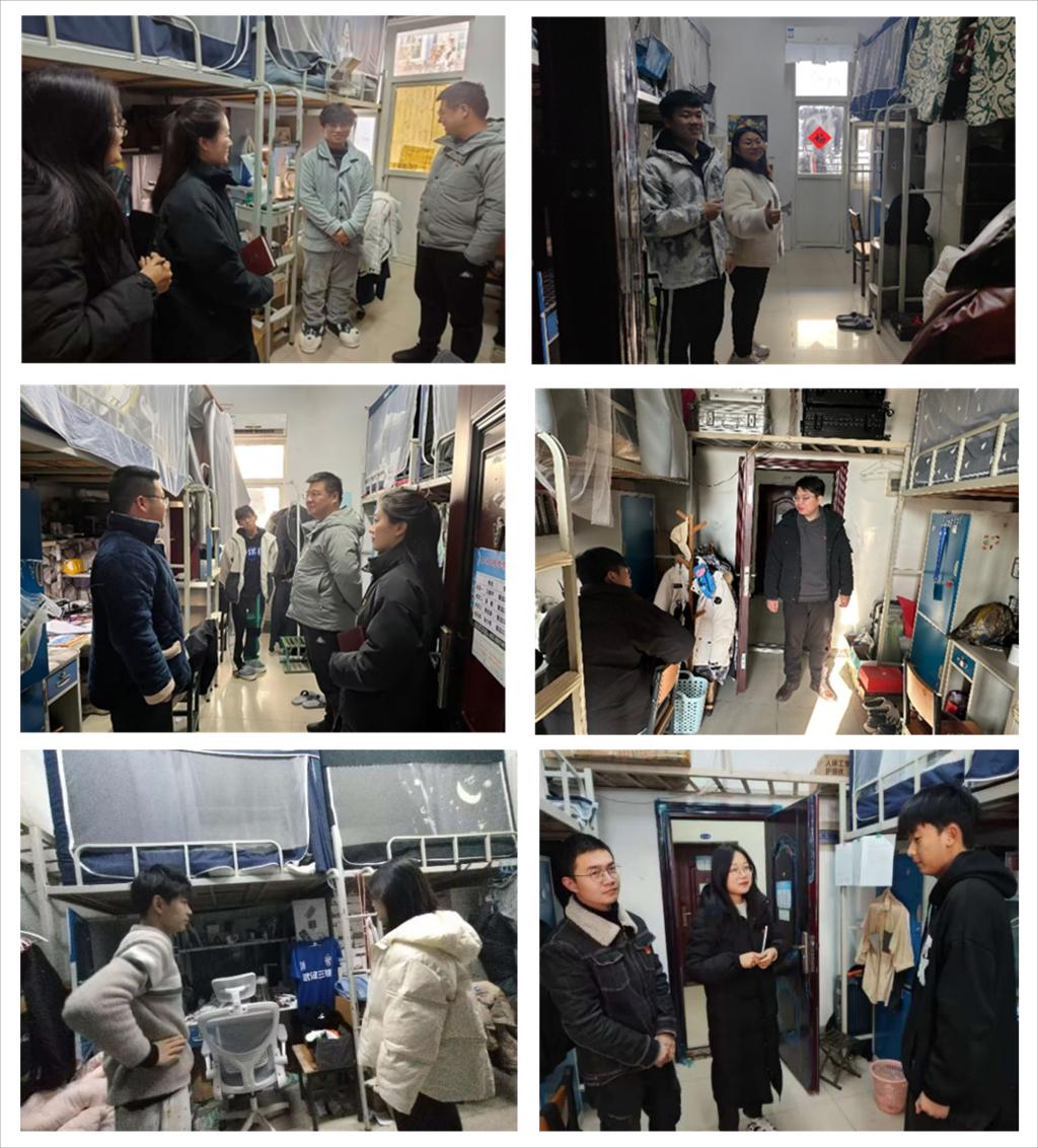 12月21日下午,vwin德赢党委副书记张昊带领各年级辅导员、班主任以及学生党员等开展宿舍安全隐患排查工作,通过检查走访,及时了解和掌握学生的生活情况,排查和杜绝各类安全隐患,切实保障学生安全。