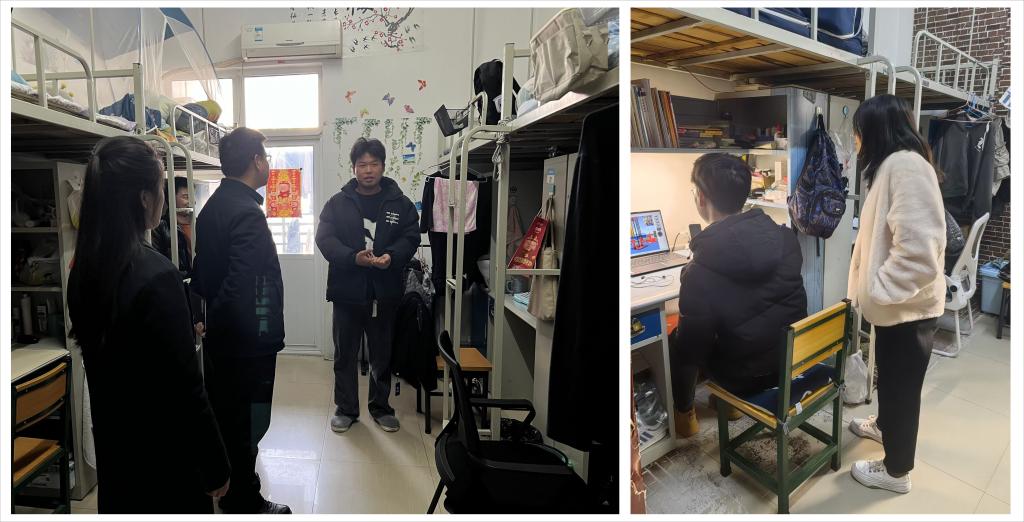不仅如此,老师们也高度重视同学们的心理健康和学习状态,在检查各个宿舍时慰问各同学、心系同学们的安全和学习,询问同学们的学习情况并给出指导建议,让同学们能够真切感受到老师们的关心。