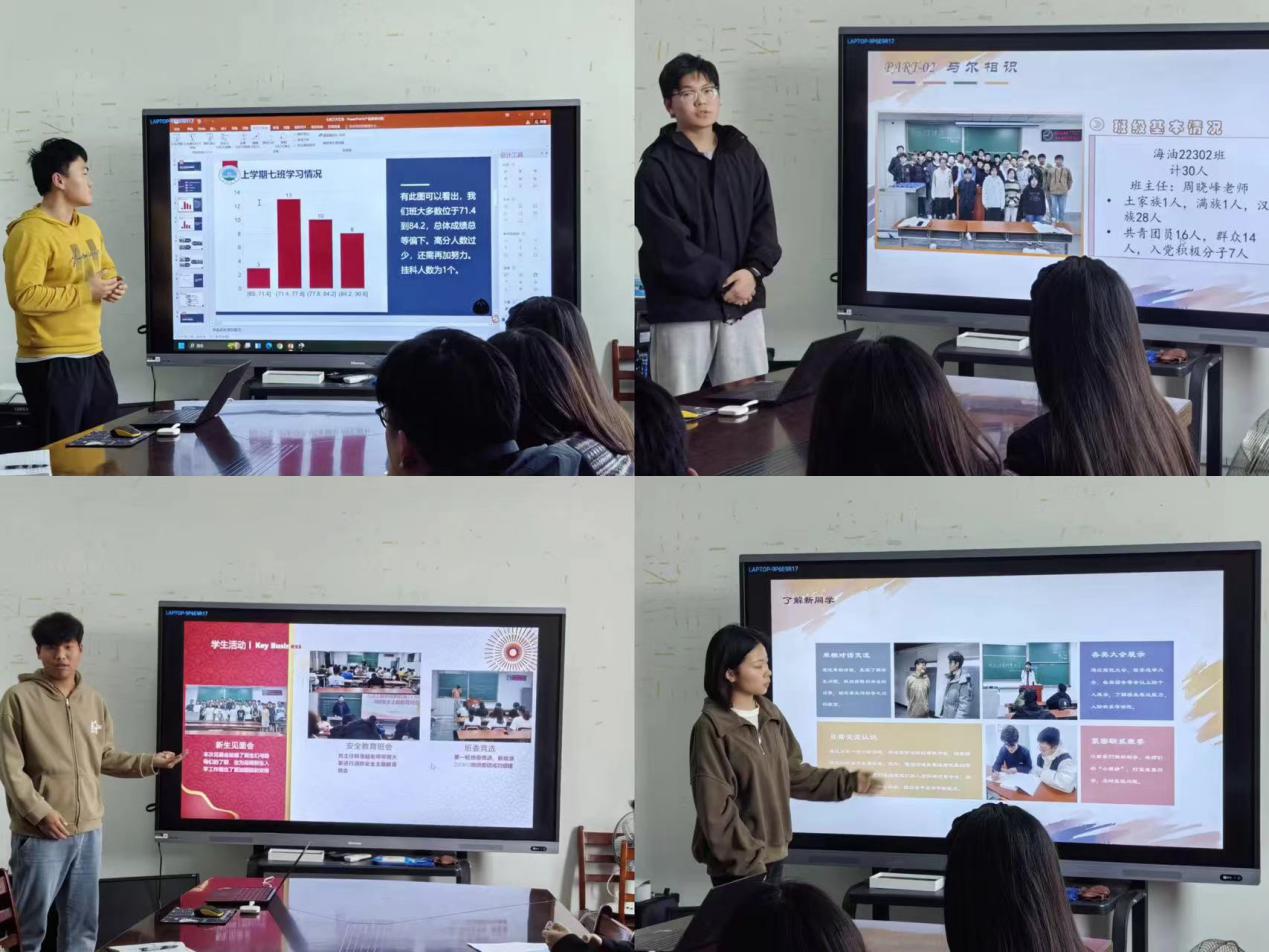 本次交流会中,马子豪带领大家从初见、磨合、溯回和展望这四个层次,为大家分享与班里同学感情交流的经验方法。吴彪为我们绘声绘色地讲述班会期间邀请同学共同参与分享的乐趣,增进了班级凝聚力。张雨鑫分享班级狼人杀、廖俊介绍寝室节目表演、丁羽忻带领大家为过生日的同学唱响生日歌、葛建伟分享很多有趣的班内小故事。