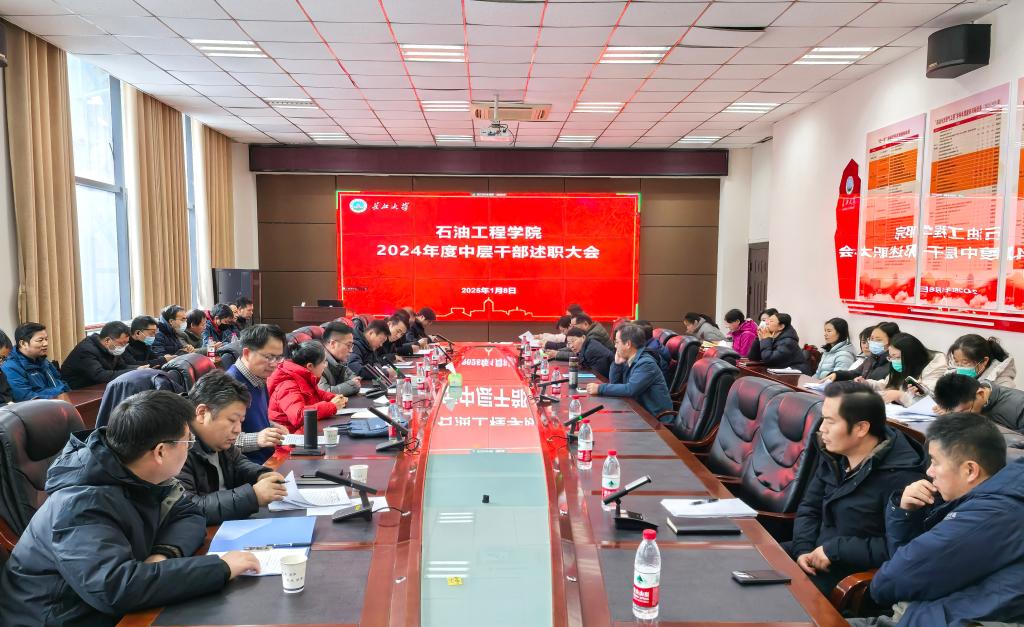 2025年1月8日下午,vwin德赢在石油科技大楼B113会议室召开2024年度工作总结暨中层干部述职大会。学校中层干部考核第四组副组长、武汉校区党工委书记崔青山出席指导,学院班子成员和全体教职工参加会议。