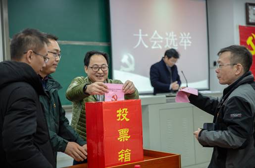 会场党旗庄严,气氛隆重,学院领导班子成员、教师党员、本科生党员、研究生党员参会。会议听取了党委工作报告,并投票选举出新一届党委成员,大会由院长江厚顺主持。