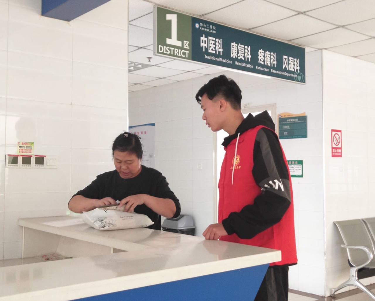 服务他人,提升自己。志愿者们在充分理解自己所在位置的职责后迅速上岗,医院的各个角落遍布他们红色的身影,成为一道亮丽的风景线。期间,支队长祝铭池主动上前帮助遇到困难的患者,维持大厅秩序;站在自助机前的程诗颖同学悉心引导未熟悉自助办理流程的患者完成挂号缴费等环节;一位腿脚不便的阿姨找到身着“红色小马甲”的彭齐爽同学,让其帮忙办理挂号……哪里有需要,哪里就会有志愿者的身影,他们积极、主动、热情的服务受到了医务人员的肯定和患者的广泛好评。在一天的志愿服务中,姚杪护士长也不时亲切地关怀同学们,并表示医院备有物资,渴了累了可以在休息区稍作休息,其体贴与细心让志愿者们如沐春风。