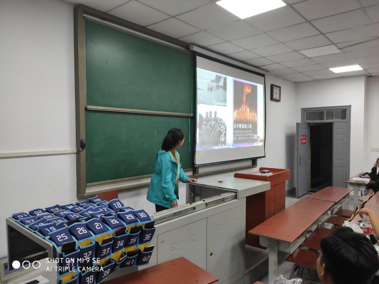 会议伊始,主持人辛玥同学上台简述会议主要内容,并通过讲解带领大家学习了“人链”精神,并同大家一起学习了《永不断裂的生命之链》、《壮美的青春交响曲》两篇关于“10·24人链精神”的报告文章。她以“永不断裂的‘生命之链’”为题,明确了“英雄已逝,精神永存”的主题方向,同时也带领大家感悟了党中央对“人链”精神的殷切希望,她说:“习近平总书记曾多次表达对英雄的崇敬之情,并号召全社会铭记英雄、崇尚英雄、捍卫英雄、学习英雄、关爱英雄。他强调,实现中华民族伟大复兴的目标,需要英雄,需要英雄精神。中华民族是崇尚英雄、成就英雄、英雄辈出的民族,和平年代同样需要英雄情怀。”