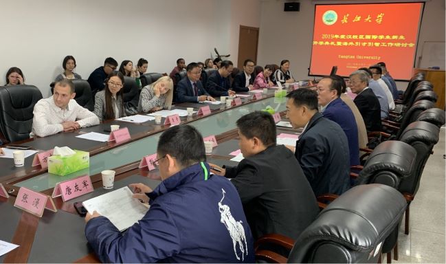 10月11日上午,副校长张玉清带领相关职能部门和学院负责人到武汉校区开展国际教育专题调研暨2名俄籍教师和14名俄罗斯、哈萨克斯坦等国际学生的开班欢迎仪式。2名俄籍教师和14名俄罗斯、哈萨克斯坦等国际学生目前均由我院(中俄能源学院)负责管理。此次14名国际留学生的到来,是我院第一次迎接10人以上规模的本科国际留学生,重新编班和授课,对于我院教学和学生管理工作来说都有较大的挑战。这些学生大多来自俄语系国家,第一年主要学习汉语,对于我校中俄试点班同学学习俄语是一次重大的机遇。我院党委书记张光明、副院长张引弟及国际化管理团队参与组织了会议并参加了欢迎仪式和座谈。