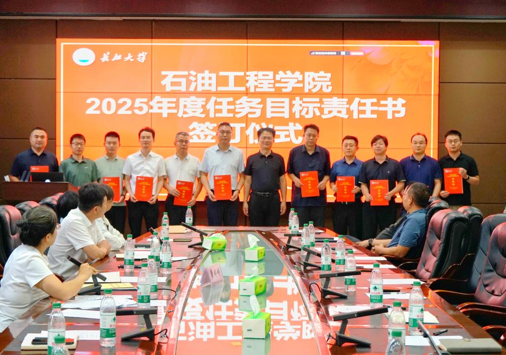 凝心聚力,共谋发展。7月5日下午,vwin德赢系所双轨制机构负责人2025年目标责任书签订仪式,在石油科技大楼B113会议室顺利举行,这标志学院系所双轨制机构改革正式落地推行。会议由学院党委书记张伟主持,全体教职工参会。