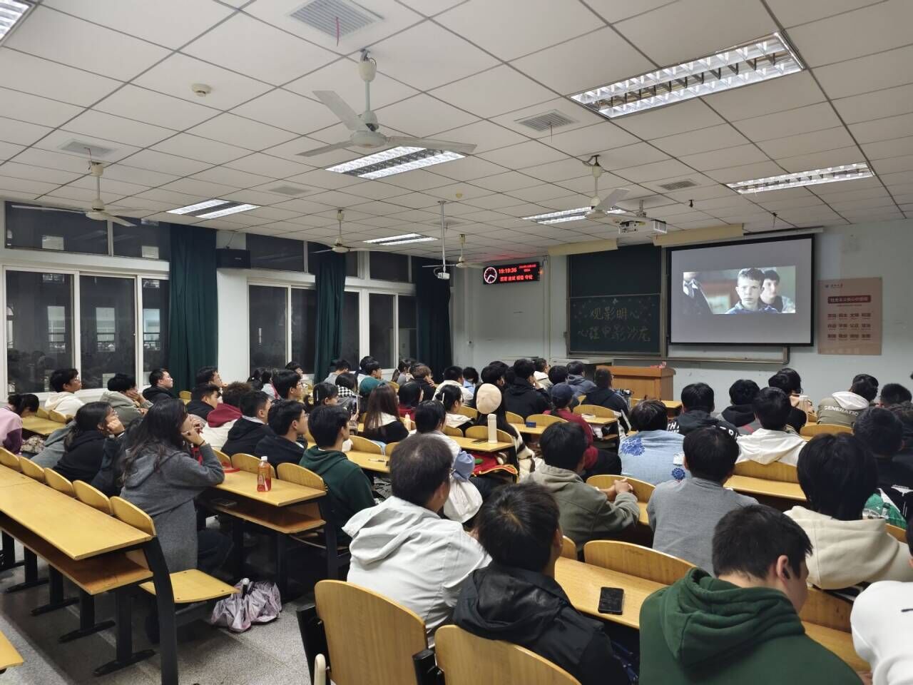 (通讯员 刘明晖 王天雨/文 舒晓宇 樊祥喆/摄)10月20日晚,油工学院在东校区13教c217举办学院心育特色活动——观影明心心理电影沙龙。本次播放的电影是《放牛班的春天》,由心育部的学生干部带领同学们在电影中感受音乐对心灵的治愈,活动由储运12401班苏辰宇主持,共70名学生参加。