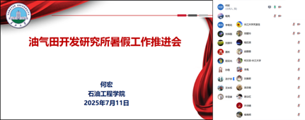 (通讯员 吴忠维 何宏)为贯彻落实学院暑期工作部署会议精神和科学研究中心工作安排,提速提质推动油气田开发研究所高质量发展,7月11日上午,研究所召开暑期工作推进会。会议梳理了学院系所改革背景下前期阶段工作成效,深入分析当前形势与挑战,并立足油气田开发研究所未来科研布局及关键发展指标,科学谋划、统筹部署下一阶段重点任务。会议由开发所所长何宏教授主持,所内全体成员参会。