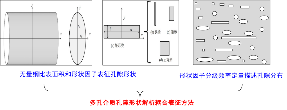 页岩储层多孔介质具体强非均质性,其孔隙几何形状对流体运移产生较大影响。通常,页岩孔隙几何形状包括从圆形到狭缝的各种可能形状。对页岩样品进行电镜扫描可以发现,大量孔隙形状偏离圆形孔隙,有机质孔隙多为圆形,无机质孔隙多为狭缝形。常规油气藏中,采用圆孔近似代表孔隙类型在许多应用中是合理的,而在页岩储层中,孔隙具有较大的表面体积比,因此,页岩系统中流体流动更多取决于孔隙形状。现有成果分别采用数值计算和解析求解的方法模拟页岩储层非圆形孔隙中流体流动规律。然而,由于计算费时等原因,数值计算目前在现场模拟中不具可行性,并且具有非圆形截面毛细管的解析方法也很复杂,并不易于普遍应用。针对上述问题,研究团队采用形状因子、无量纲比表面积和分形理论等方法定量表征了有机质多孔介质静态结构特征等对气体运移的影响。形状因子用于量化孔隙几何形状、表征孔隙形状对流体运移的影响具有显著优势,其中形状因子可以根据氮吸附测试和汞注入毛细管压力计算;无量纲比表面积精确刻画了表面力作用对流体运移的影响,可通过孔隙形状形态计算得到。相关方法大幅度提高了计算效率。
