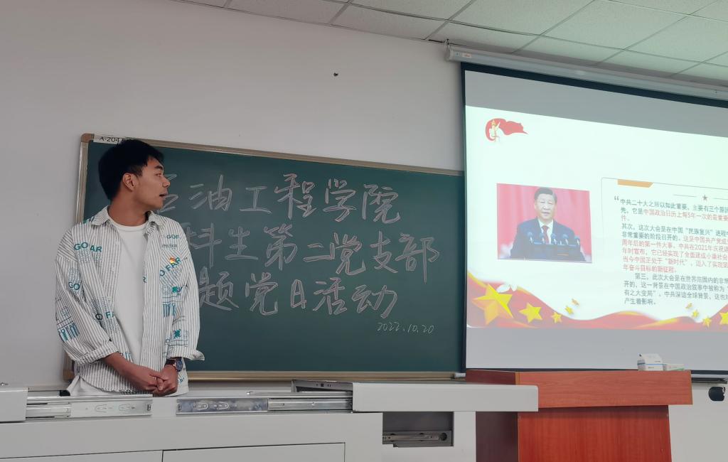 首先,同志们集体诵读党章并学习了党的创新理论,观看了中国共产党第十九届中央委员会第七次全体会议公报视频,时刻保持政治思想与党中央保持一致。随后,大会开展主题研讨,熊志红同志,魏嘉同志和任堂政同志结合其自身情况分享了学习习近平总书记在中国共产党第二十次全国代表大会上所作报告的体会。会议最后一项,进行了党课“我”来讲分享会,主要由颜博等五位同志,分别以“青春之我,当逢、其时”、“感悟二十大,做有为青年”、“新时代合格党员”、“党员责任”、“践行四讲四有”为主题进行分享。