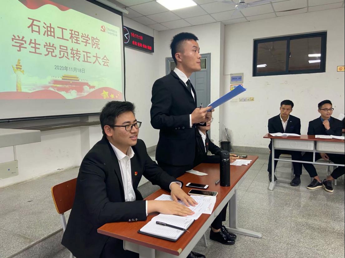 (通讯员 康汉博)2020年 11月18日下午4时许,vwin德赢2020年下半年学生党员转正大会于武教B207如期举行,本次会议由龙远、陈金建、李白雪三位同志主持,会议讨论了关于刘洋等12名同志申请转为正式党员的问题。