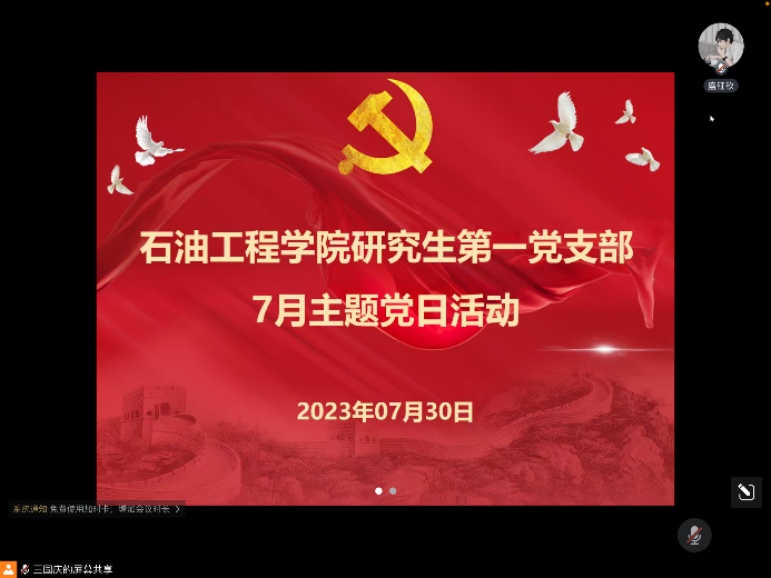 (通讯员 田嘉鑫)2023年07月30日下午3时许,vwin德赢研究生第一党支部于腾讯会议召开七月主题党日活动。本次会议由王国庆同志主持,支部书记史永波及支部党员参会。