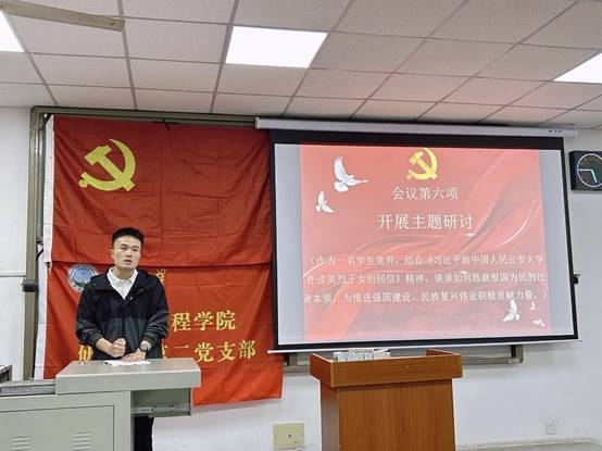 最后,由支部书记陈金建同志作总结,针对主题研讨的内容详细阐述了我校“求实、进取、创业、报国“的校风内涵,并指出在未来的学习和工作中,支部将继续带领全体党员感悟思想伟力、强化理论武装、坚定信仰信念、立足专业特色,以更加饱满的热情与信心聚集能源安全,为推进强国建设贡献出自己的一份力量。