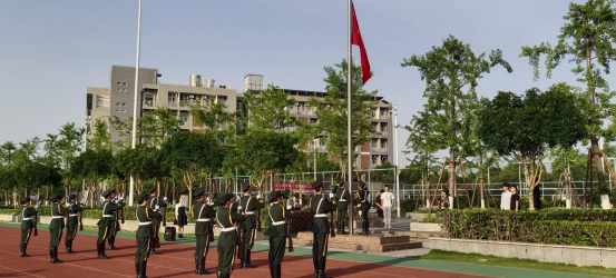 7时整,国旗护卫队踏着坚毅的正步,缓缓将国旗送入操场中央。他们坚定有力的目光、整齐一致的步伐,展现出了长大学子的风貌。在嘹亮的国歌声中,鲜艳的五星红旗冉冉升起,全体人员行注目礼。