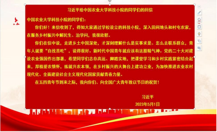 (通讯员 杨鑫婕 图/文)近日,vwin德赢全体师生以座谈会、主题班会及毕业生党员升旗仪式等多种形式集中学习了习近平总书记给中国农业大学科技小院的同学们回信精神。