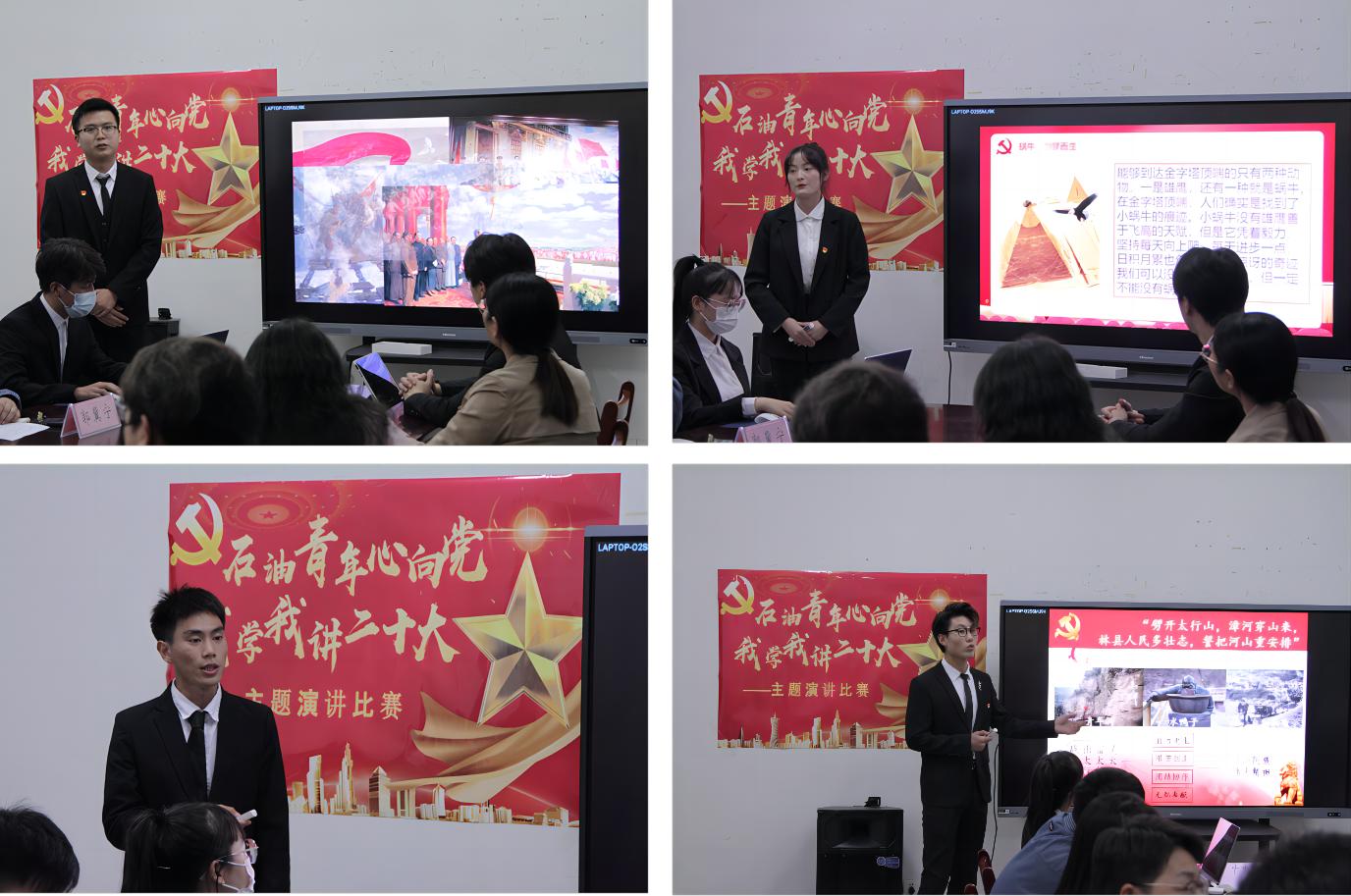 12名选手们用质朴的言语、真挚的情感,从党的二十大报告入手,述说着对党和国家的热爱之情,让观众感受到共产党人矢志践行的初心使命、筚路蓝缕奠基立业、创造辉煌开辟未来的艰辛和伟大。“踏着先辈的足迹,当代青年唯有步履不停、不断奋进,才能创造出无愧于先辈的英雄业绩。作为新时代的石油青年,我们应紧紧追随党的步伐,听党话、跟党走,端牢国家能源饭碗。”当提到青年责任,贾浩博同学如是说。“中国梦是人民的梦,更是青年一代的梦。作为能源行业的一份子,更作为伟大的中国共产党的一份子,我们要对得起国家,对得起佩戴在我们身上的党徽!”学生党员谢晓敏同志激动地讲道。