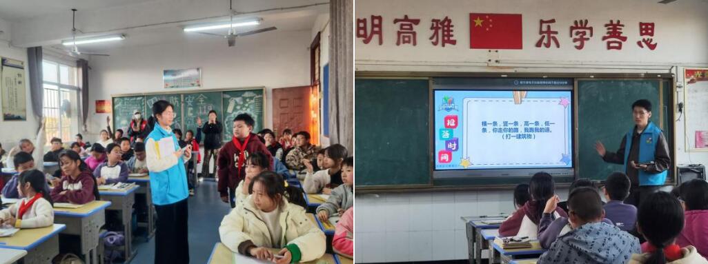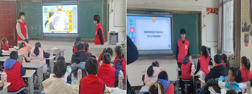 活动现场氛围热烈,学生们踊跃参与互动,展现了浓厚的学习兴趣同时,其他志愿者也积极协助维护秩序,确保宣讲顺利进行。